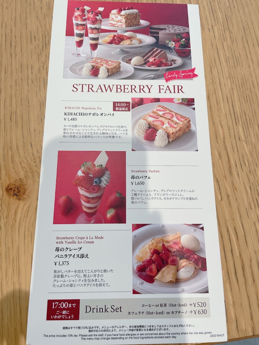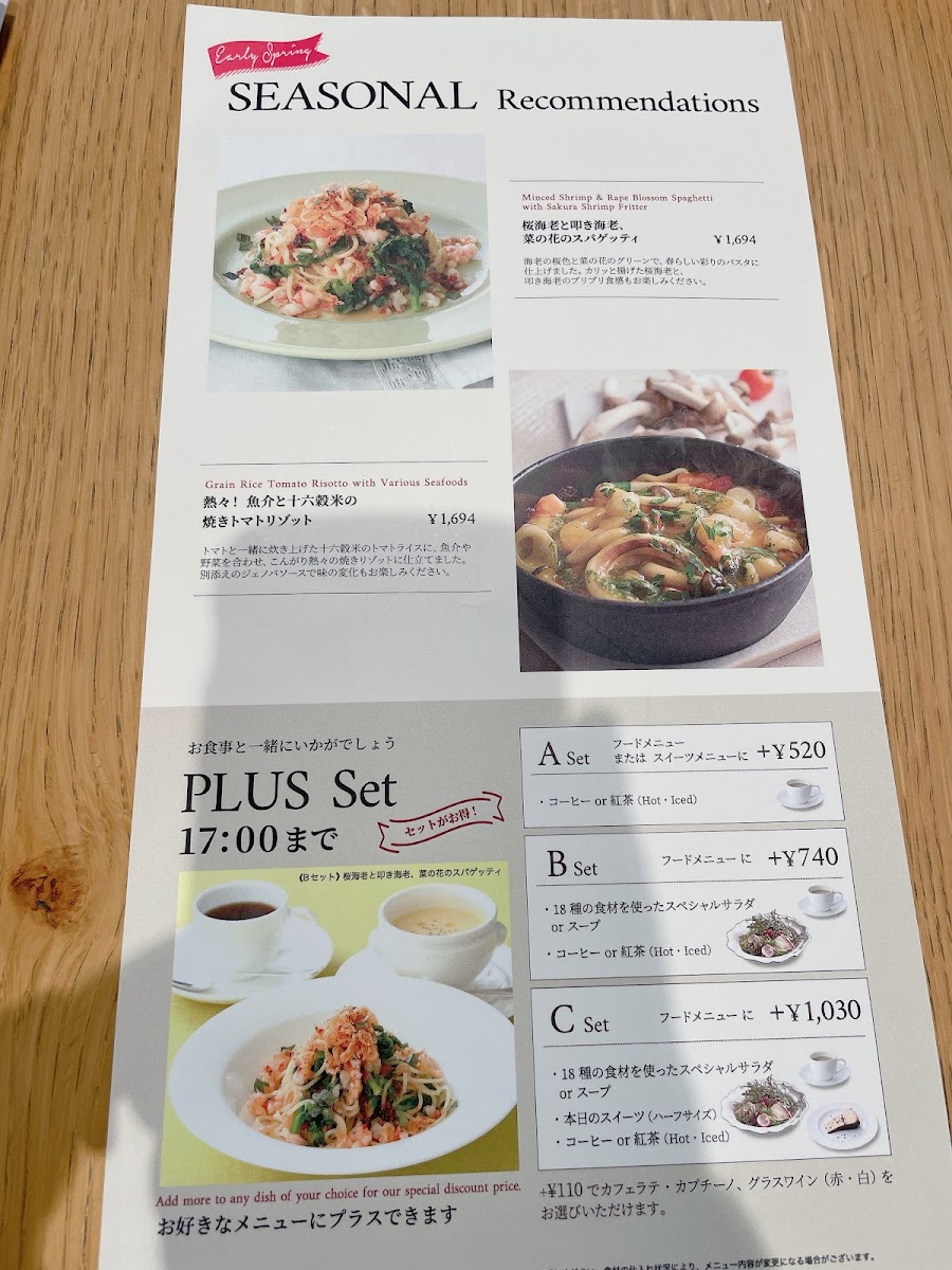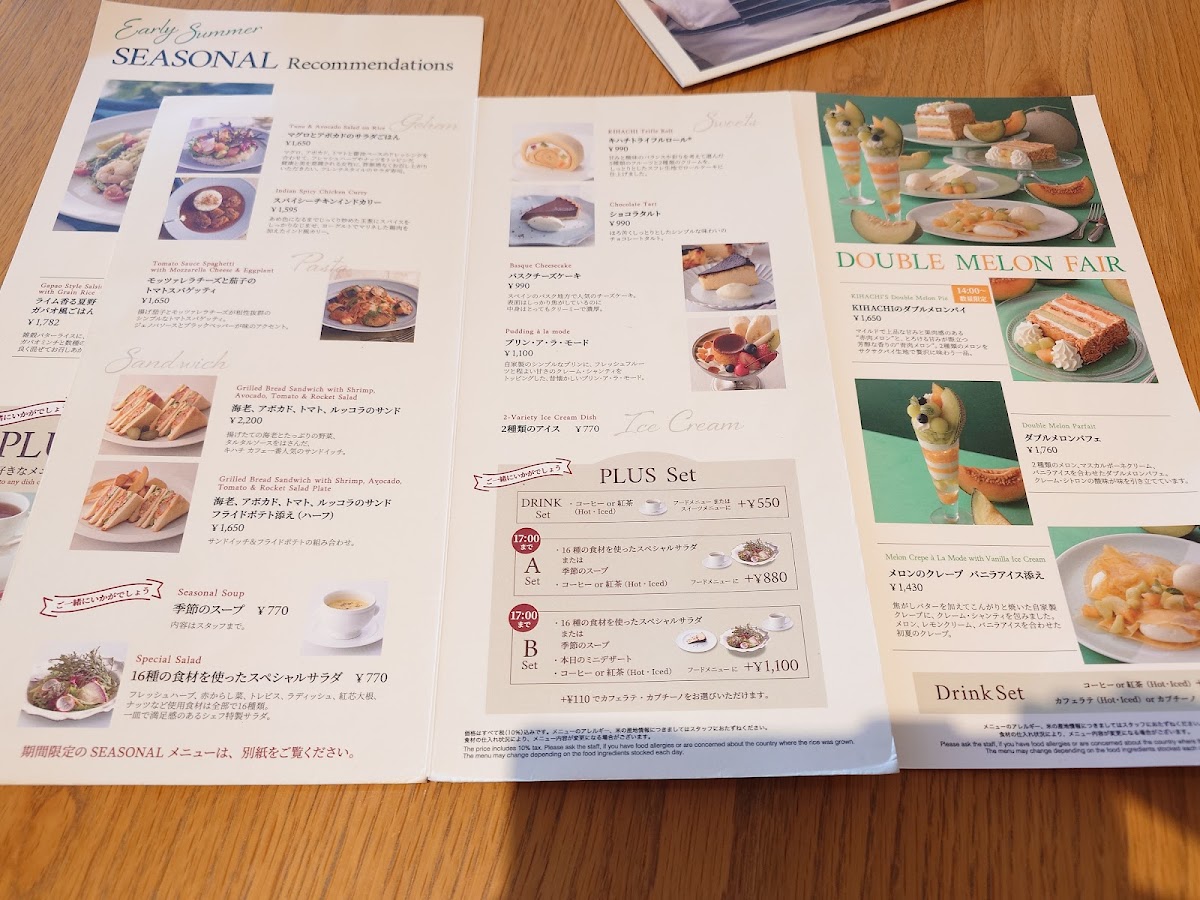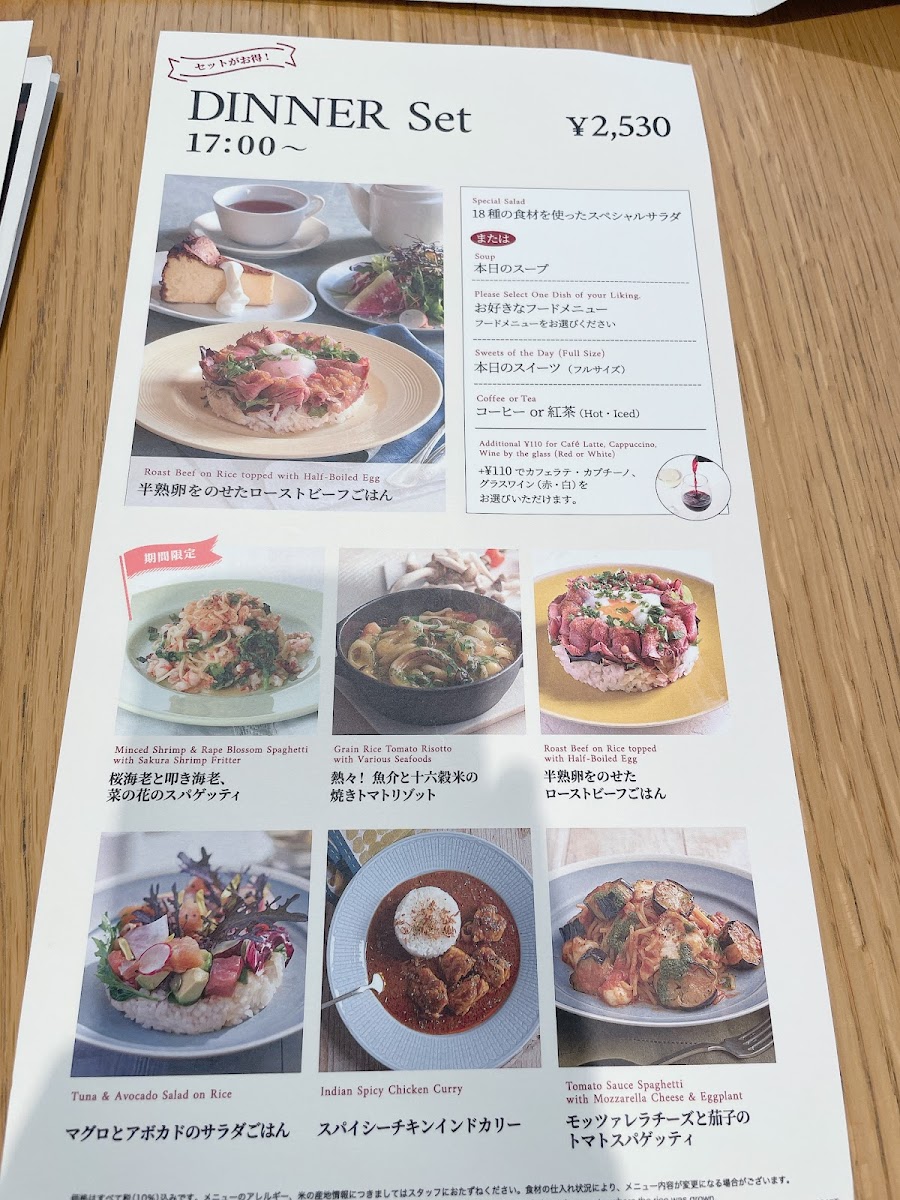 Kihachi Kafe specializes in a range of comforting and beautifully presented Japanese-inspired dishes, with a selection that spans from sumptuous salads to rich desserts. One highlight from their menu is the Dinner Set, priced at JP¥2,900, which showcases seasonal ingredients. You can savor a Special Salad crafted with 18 different components, paired with your choice of a delectable food item, today's dessert, and a hot beverage. For those who prefer coffee, a small upgrade allows you to indulge in a luxurious Café Latte or Cappuccino for just an additional 110 yen.
